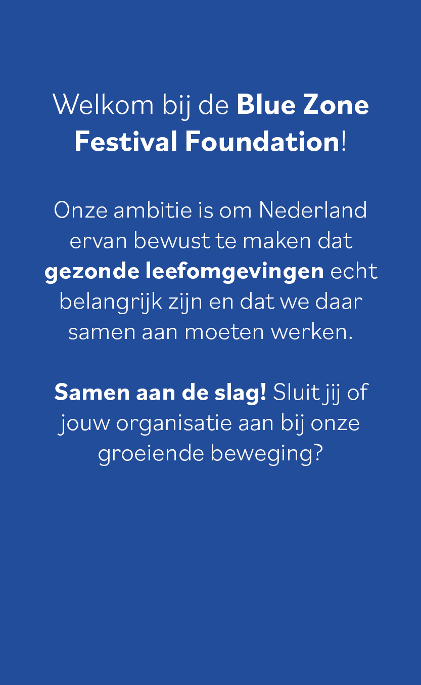 Word Vriend van het Blue Zone Festival en help mee aan een gezondere samenleving