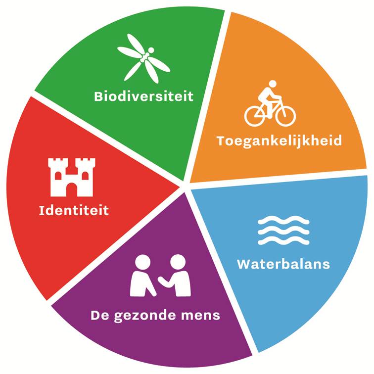 - Toegankelijk groen: Iedere inwoner heeft toegang tot landschappen met een kwaliteit die aansluit bij recreatieve wensen en behoeften.